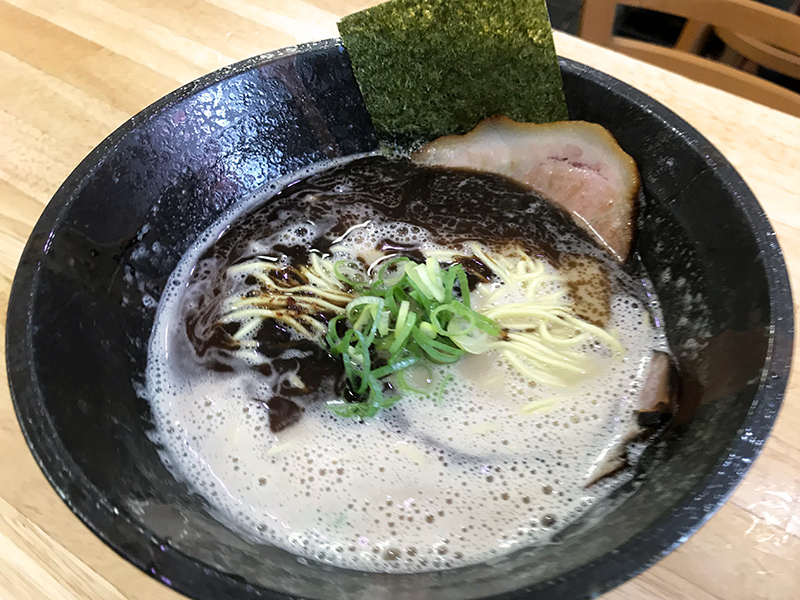 濃厚な豚骨スープに焦がしにんにく油を加えた、にんにくのパンチが効いた一杯。歯切れの良い細麺も合いますね!豚骨好き、にんにく好きにはたまりません!