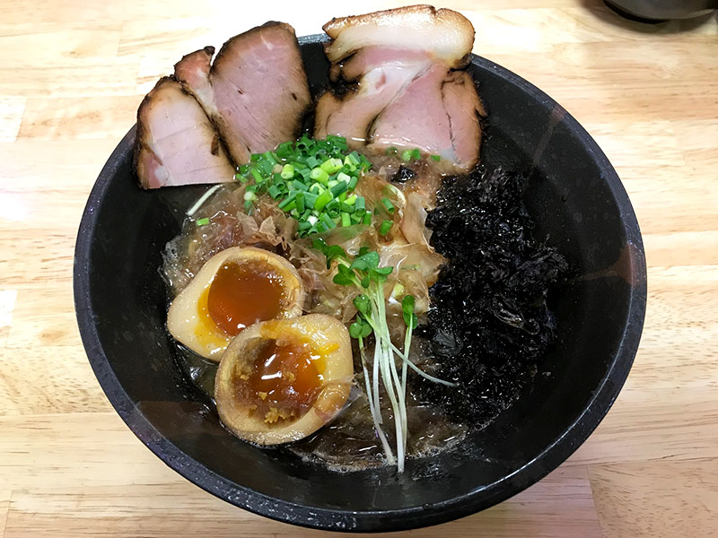 長谷川町子先生リスペクトのネーミングですね。バラ海苔と鰹節がたっぷりとトッピングされた、かつお系ラーメンにふさわしい一杯です。