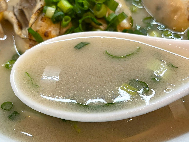 一目見て驚かされたのが、スープの表面を覆う、まるでスチームミルクのような白い泡。豆乳?豆腐?をホイップでもしてるのでしょうか。この泡のおかげで、スープがとってもクリーミーに仕上がっています。