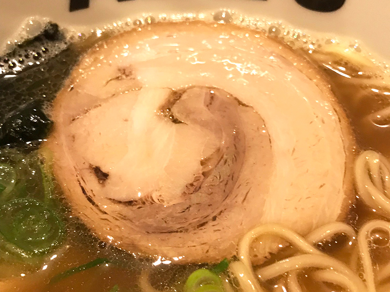 にぼしラーメンの主役級なトッピングは、こちらの厚切りチャーシュー。およそ7mm程はあるかと思います。柔らかく、肉のうまさもしっかりと感じられるチャーシューは、ABE’sにぼしらーめんの大事な一旦を担っていますね。