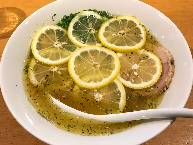2020年11月の限定麺。レモンの酸味とハーブの香りが楽しめる、とても上品なラーメンです。レモン効果でスープはさっぱりしてますが、旨味もしっかりと感じられて本当にうまい!感動的な美味しさです!