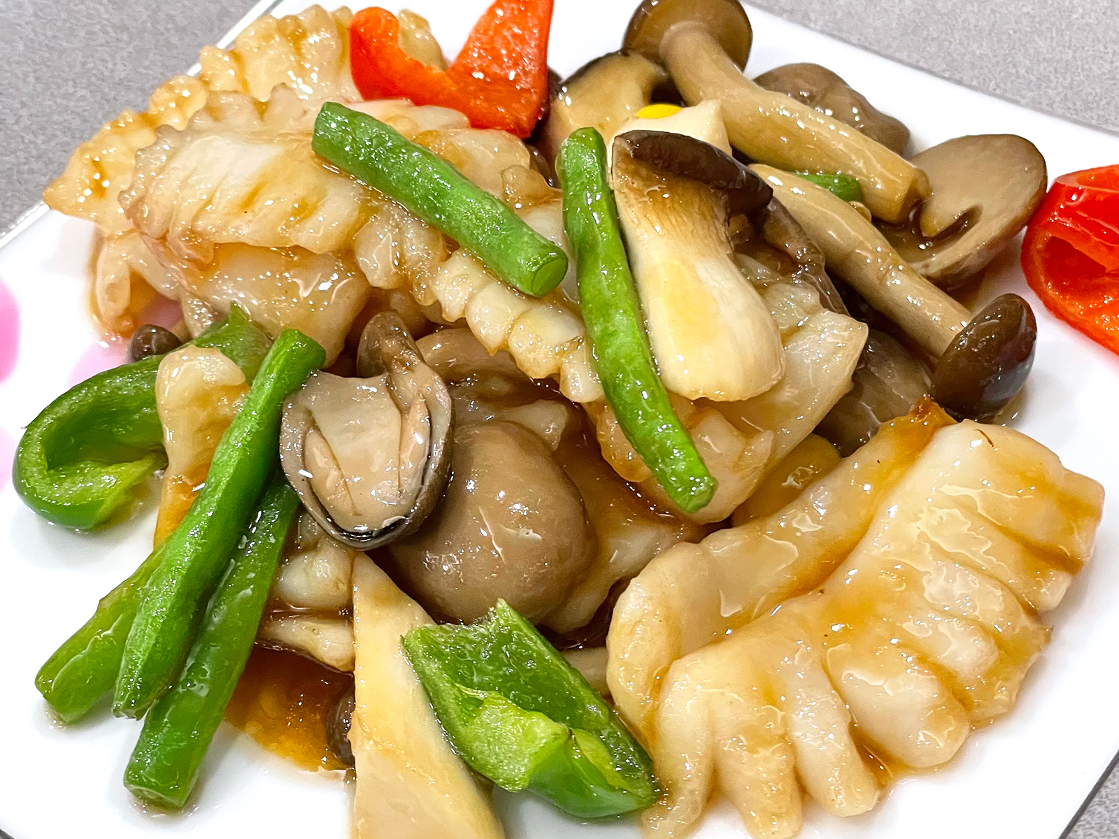 紋甲イカがめちゃくちゃ柔らかくて美味しい!筋っぽさが一切なく、サクッと噛み切れます!オイスターソースがベースの味付けですが、とても上品な味付けでしつこさ・油っこさが一切ない!野菜のシャキッとした歯ごたえがしっかり残っていて、火の入り方が完璧!最高に美味しい!