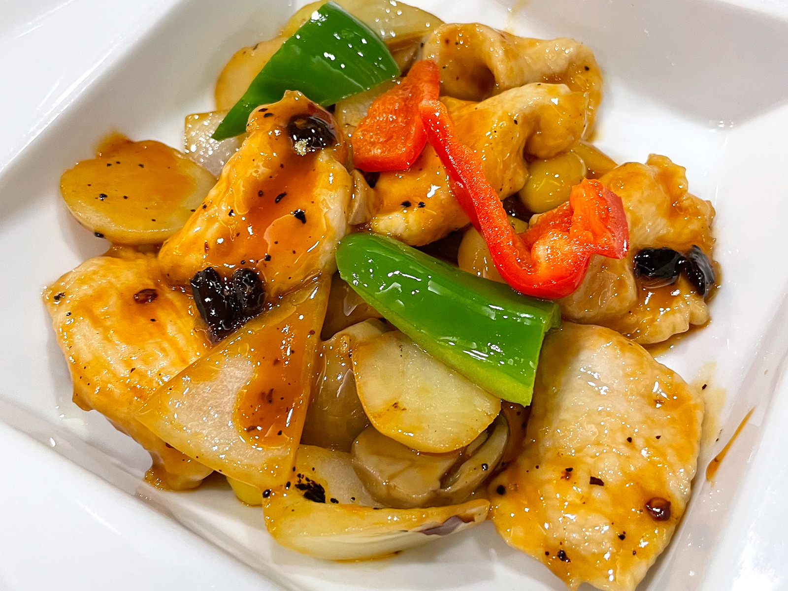 この日の週替わりメニューは、鶏肉のピリ辛豆豉炒め。鶏肉の柔らかさにびっくり!お野菜のシャキシャキした歯ごたえと、豆豉の香りがアクセントになっていて、これぞ本格中華といった味わいです!