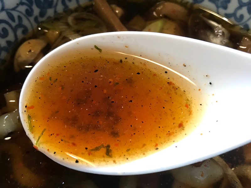 透き通るスープが美しいですね。あさりの出汁にまろやかな塩味がとってもマッチしていてうまいです。ちょいちょい入ってくるあられの香ばしさが強いので、あられは無しでもいいかな。油をほとんど感じないので、和のすまし汁とか出汁茶漬けのようなアッサリした味わいで、体に優しく染み渡ります。
