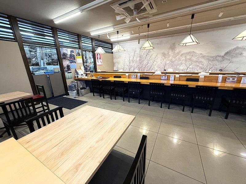 明るくて開放的な店内。カウンター席も広々しています。テーブル席も、もちろんありますよ。