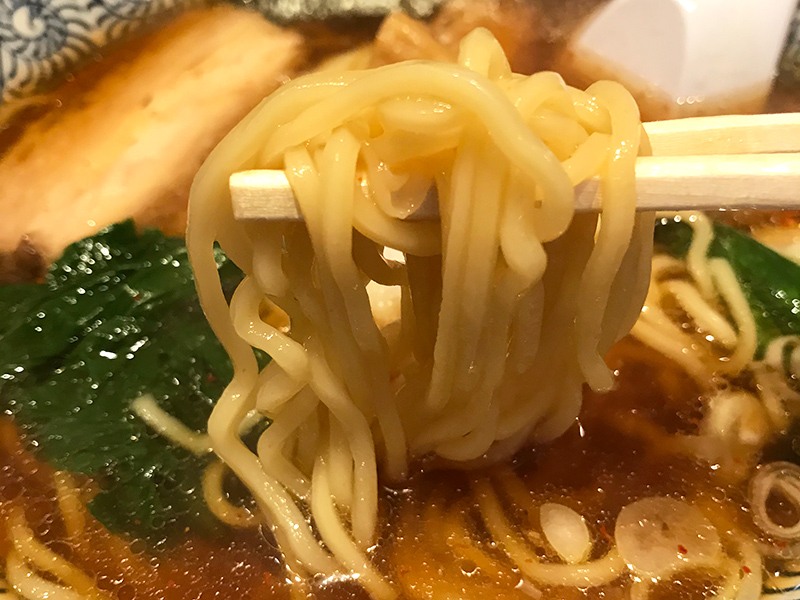 ぷりぷりの歯ごたえが楽しめる中太ちぢれ麺は、魚介と豚の旨味が強いスープに負けず、存在感を十分に発揮しています。個人的にはシンプルな中華そばは細麺で頂きたい派ですが、次郎さんのような重厚感のあるスープには、これくらいの中太麺が合っていますね!