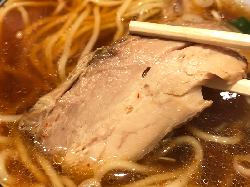 豚の甘みが楽しめるチャーシューは、ホロホロとほどける柔らかさ。トロンとしていて美味いです!このチャーシューの脂もスープに溶け出して、いい一体感を生んでいるのかもしれません。