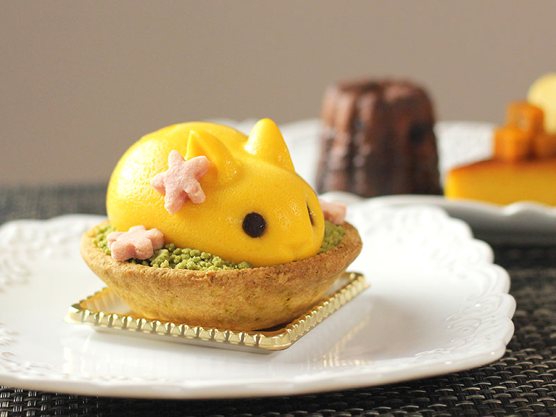 まるで絵本の世界から飛び出してきたような、メルヘンチックなうさぎさんのタルト。もちろんかぼちゃでできています。なめらかでプルンとした食感で、かぼちゃの美味しさもしっかり感じます。タルトの中にもかぼちゃとラズベリーのソースが入っていて、この構成が本当に素晴らしい!お子さんが喜びそうな見た目ですが、味は大人が食べても大満足のクオリティです!