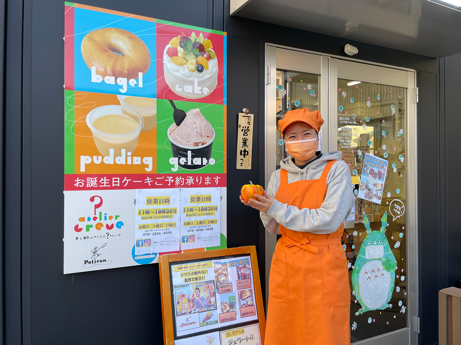 静岡市葵区田町、住宅街の細い路地を入っていくと、突如として現れるこちらの隠れ家的なお店がベーグル専門店のアトリエクレーヴと、かぼちゃスイーツ専門店のポティロン。2つの異なるお店が店舗を共有して販売しています。