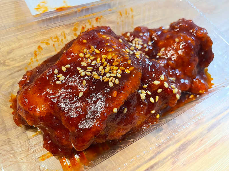 コチュジャンをベースにした韓国ピリ辛ダレのからあげ!もうちょい甘辛かなと思ったら、甘さも感じるけど結構な辛さ!中一の息子は途中でギブでしたが、これはクセになる辛さ&旨さです!