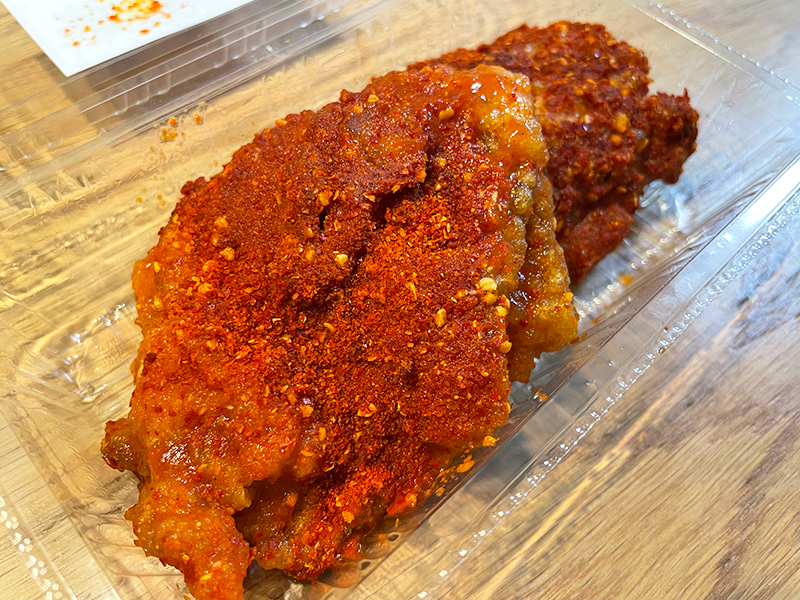 名前の通り、見た目の通り、唐辛子がこれでもかとまぶしてある激辛のからあげ!一口食べれば舌がヒリヒリ!食べた後は胃の中もヒリヒリ!チャレンジ系のからあげですね!辛い物が得意な方以外は控えた方がいいかもしれません。