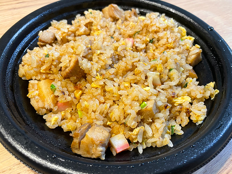 お店の名前が付いている看板メニューJET炒飯。ラーメンチャーシューのようなお肉が、ゴロゴロ入っています。写真はミニですが、一人ならミニで十分な量です。9月29日現在、炒飯はJET炒飯、レタス炒飯のみの提供でした。エビ炒飯や高菜炒飯など種類が豊富に用意されているようなので、今後が楽しみですね!