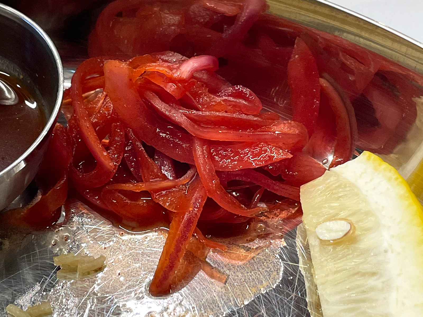 ビリヤニと一緒に食べると、旨さが倍増する付け合わせも魅力的!アチャールはインドのお漬物で、酸味が食欲を掻き立ててくれます!赤玉ねぎのシャキシャキした歯ごたえも最高!