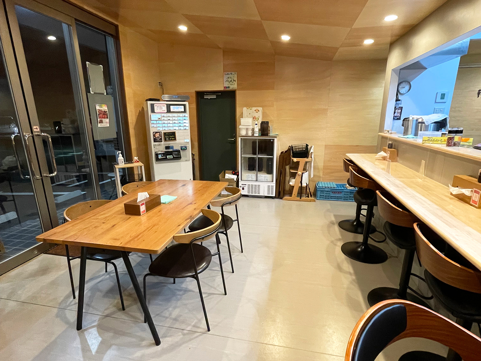 この辺りのエリアはラーメン屋さんが少ないので、新しいラーメン屋さんの誕生は本当に嬉しい!建物自体も新しいようで、綺麗で清潔感があってオシャレなカフェみたいな雰囲気。デートにもぴったりですよ。店内の座席数はテーブル6席、カウンター6席とコンパクト。入り口入ると左側に券売機があるので、食券を先に購入しましょうね!