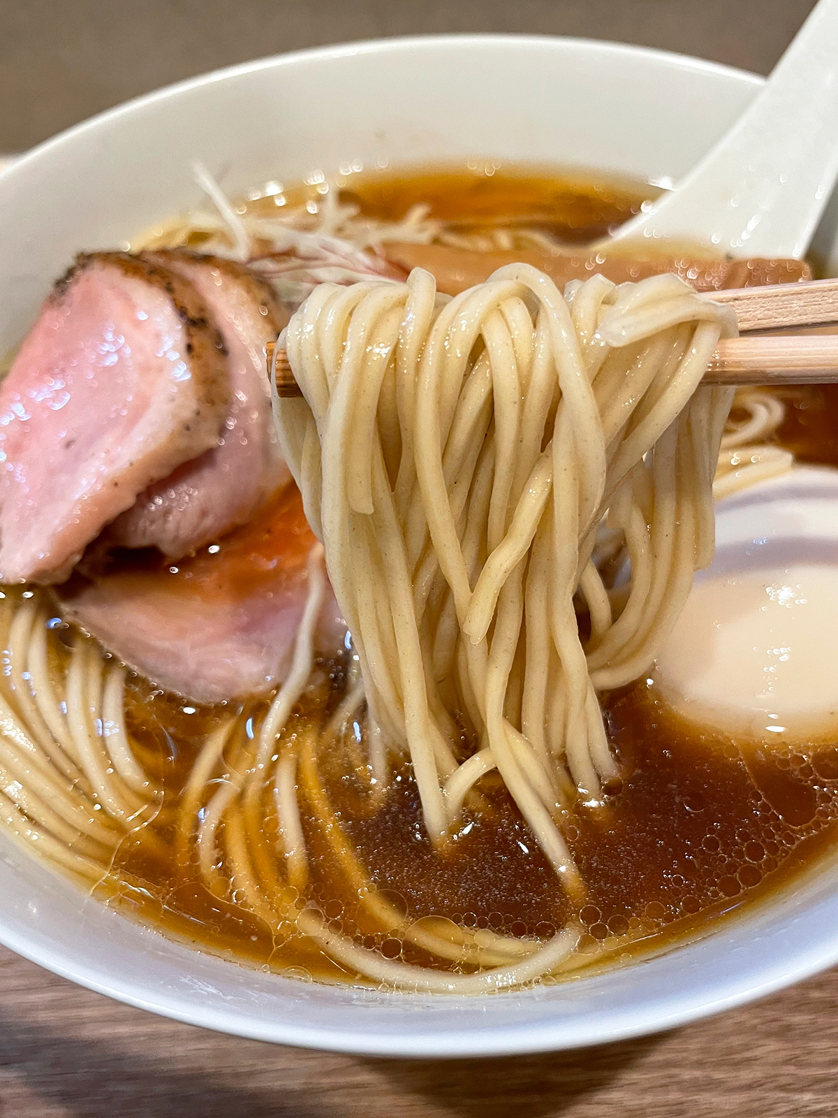 そしてこの麺がたまらなく美味しい!見た目にも美しい細麺は、スープの美味しさをガッとつかまえてくれて、スープとの相性が抜群!啜り心地も夢見心地で、鼻から抜ける小麦の香りが最高にうまい!