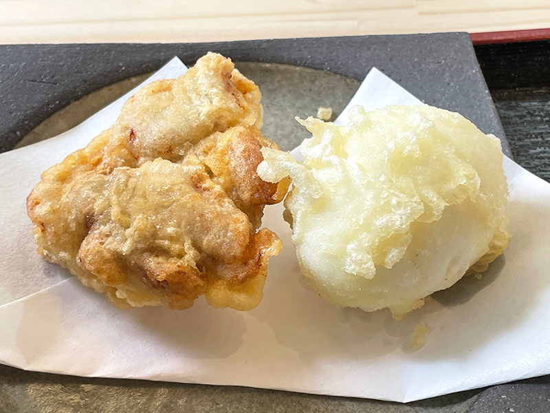 別盛りでついてくるとり天と半熟たまご天。とり天は衣がサクッと、中のお肉はプリッとしていてめちゃくちゃ美味しい!