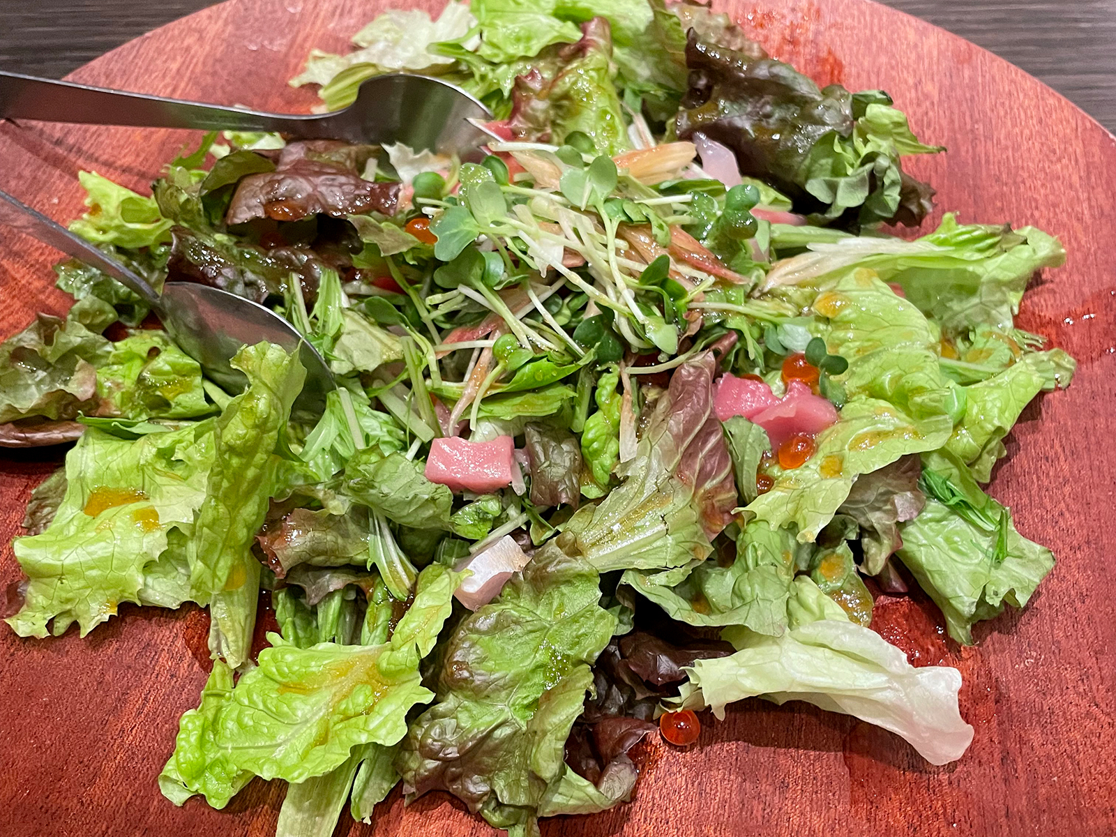 彩り海鮮サラダは、お刺身やいくら等と、たっぷりのお野菜が楽しめます!サッパリ箸休めが嬉しいですね!