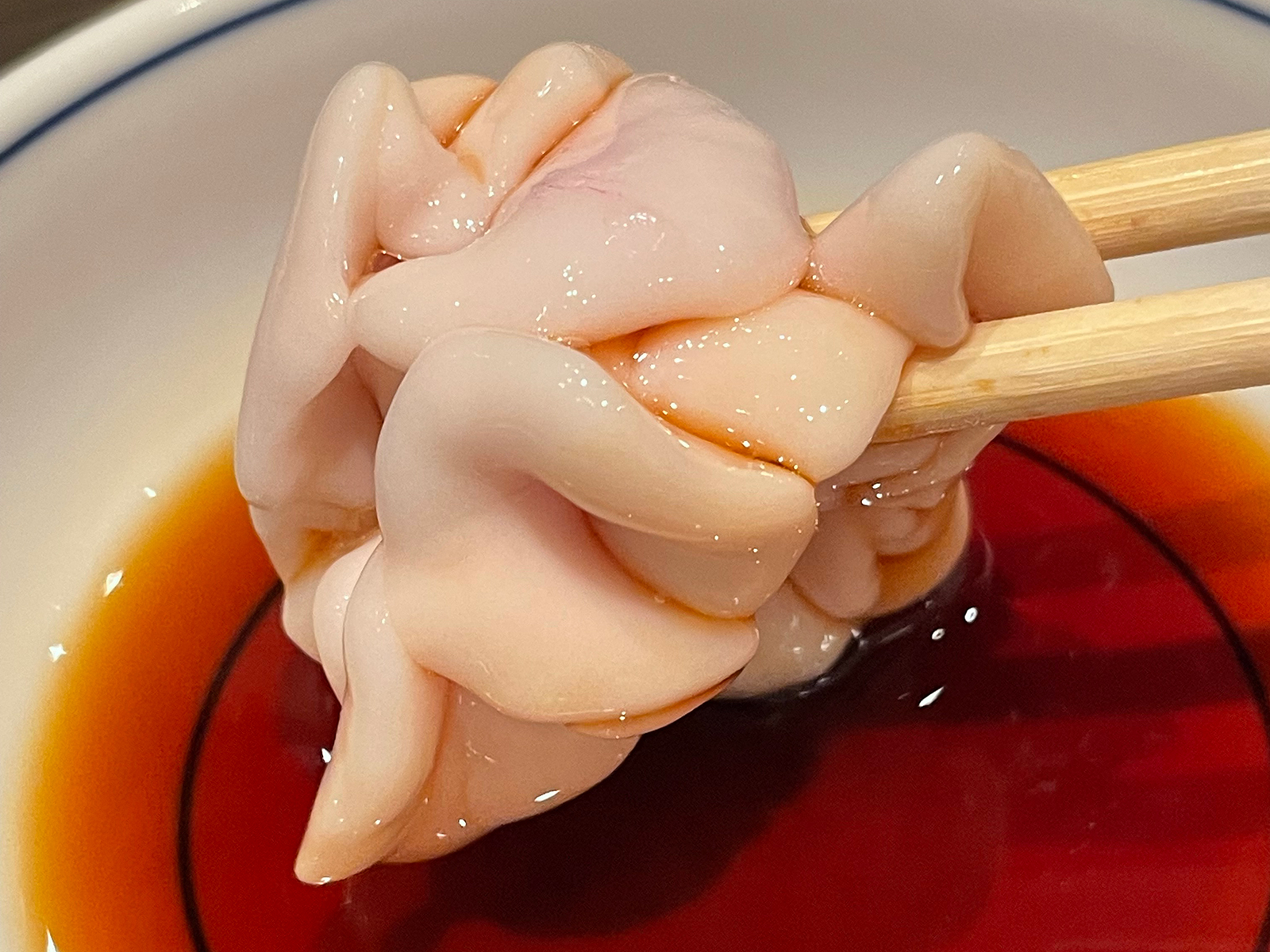 白子は生でも食べられるとのことで、火を入れる前にポン酢で頂きました。トロッとした食感でクリーミーで美味しい!実は白子をこういう形でしっかり食べるのは初めてで、食べる前は少し抵抗ありましたが、意外といけちゃいました!クセになるうまさ!