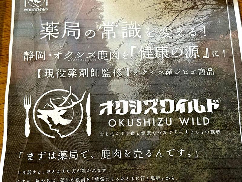 「薬局には通常、患者さんしか来ないわけですが、もっとたくさんの人に来て欲しいと思い、何か良い商材がないか探していました。最近、薬局界隈では馬肉の販売が流行っているんですが、他とは違うことをしたいと思い、交友関係のあったオクシズの猟師さん、食肉卸業の肉のモヅメさんと共に、鹿肉はどうだろう!これはどの薬局もやったことがないだろう!ということで、『オクシズワイルド』と命名、ブランド化して販売することにしました。」
