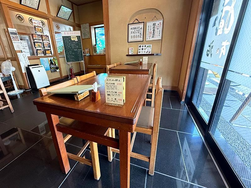 テーブル席、小上がりのお座敷があります。お客さんは、顔なじみの常連さんが多い印象。店員さんも感じが良くて、落ち着きます。