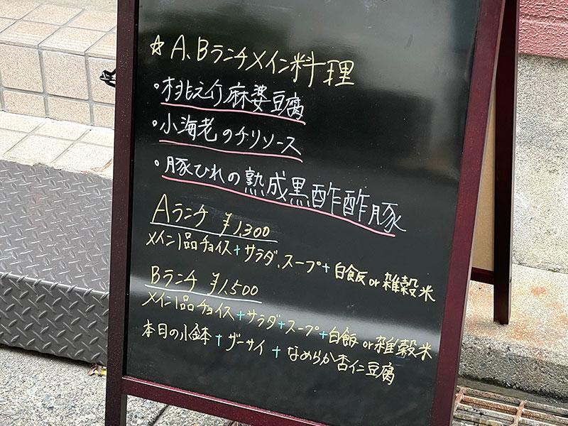メインが選べるランチセットは、メイン、ご飯、スープ、副菜、ザーサイ、杏仁豆腐がセットになったBセット。この日の副菜はオクラの炒めでした。