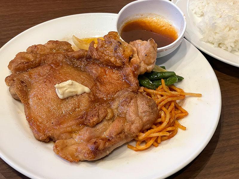 ボリューミーなチキンソテーも最高!鶏もも肉が1枚こんがりソテーしてあって、醤油ベースのソースが抜群にうまい逸品!ボリュームもしっかりあって大満足です!