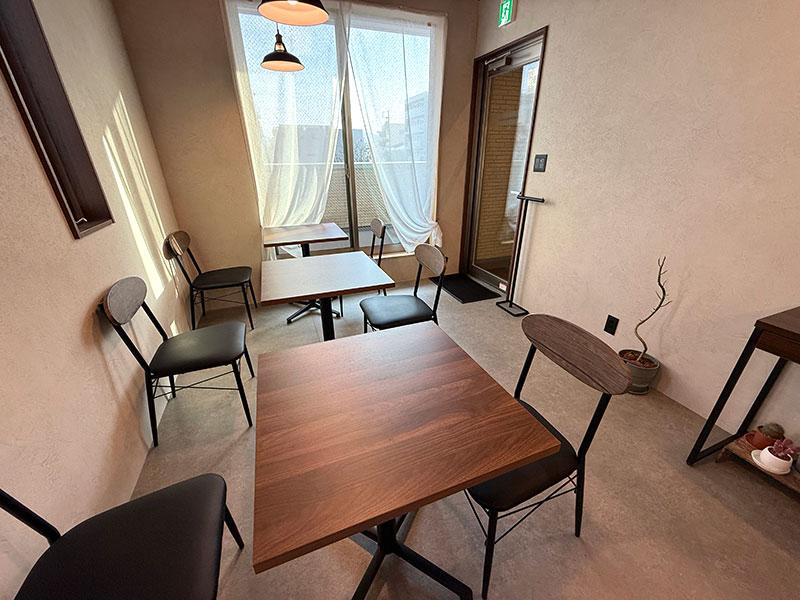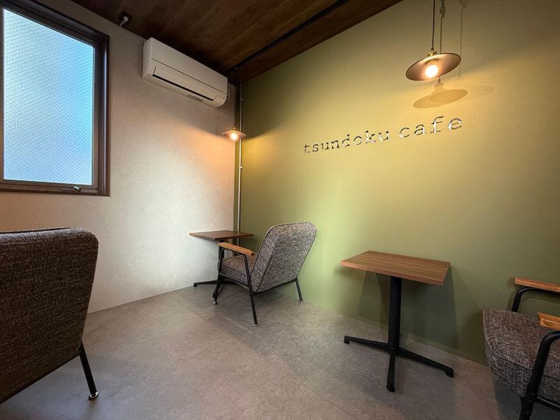 店内には2人掛けのテーブル席と、1人用のテーブル席が用意されています。店名の通り、積読してある本を読むのにぴったりな、静かで落ち着ける雰囲気です。BGMも抑えめで、読書に集中できそう!