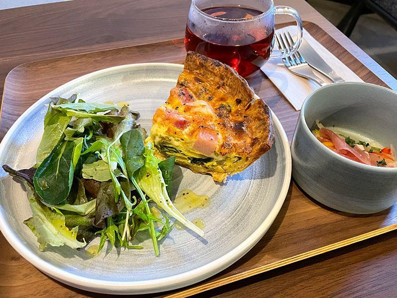 キッシュプレートにはサラダとキッシュが乗り、1品生ハムマリネか豆とツナのサラダが付いてきます。