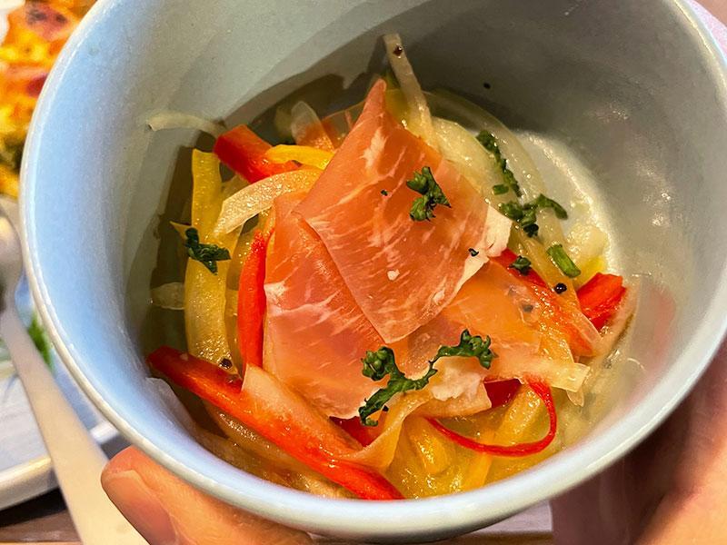 選んだのはこちらの生ハムマリネ。生ハムとパプリカや玉ねぎのマリネが入っています。丁度いい酢加減で美味しい!